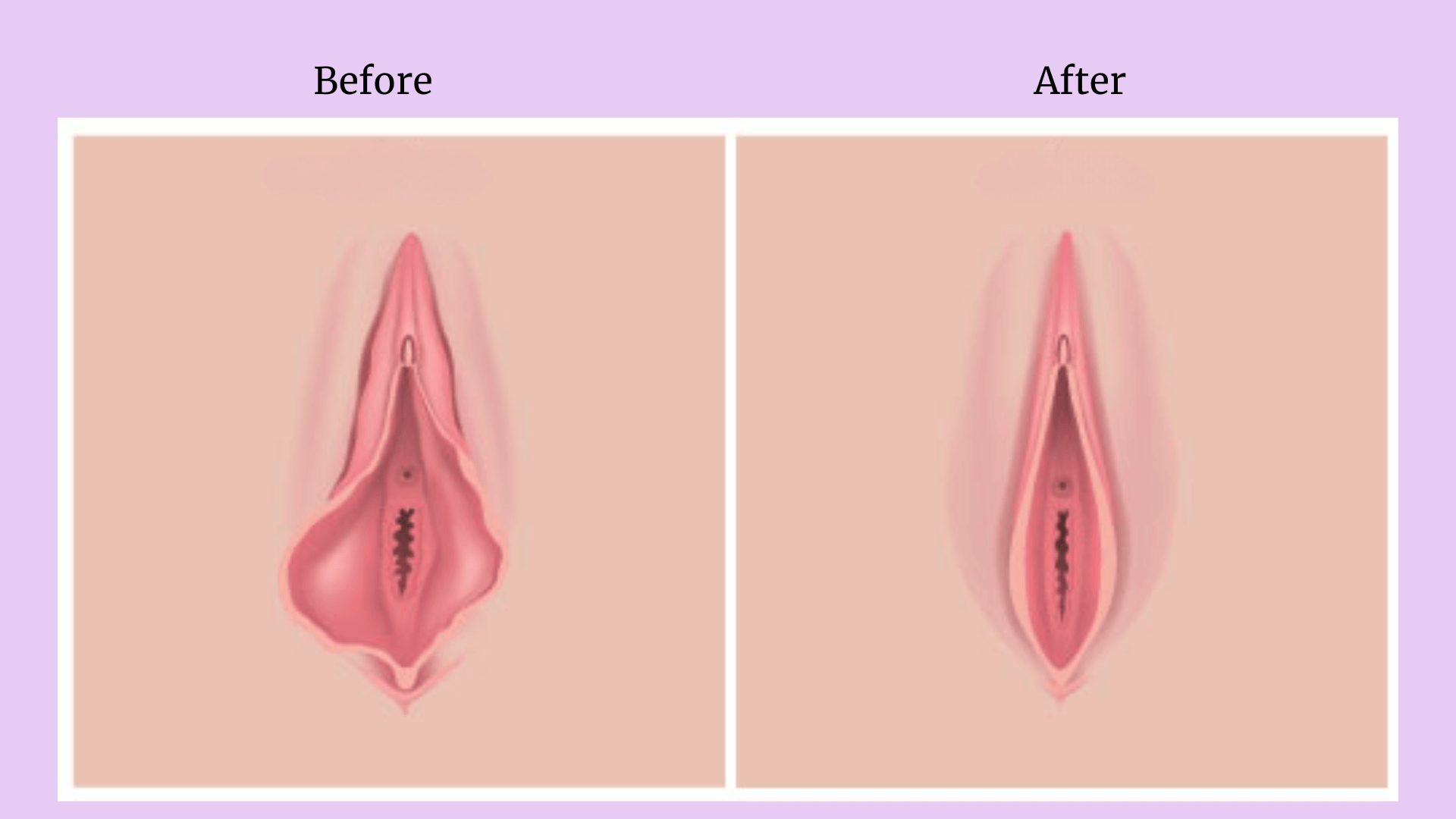While vaginal tightening surgery addresses vaginal prolapse and a loose vaginal interior, labiaplasty surgery addresses issues of the external labia of the vagina. Labiaplasty is a procedure to correct the size and shape of loose and elongated labia majora (the outer folds of the vulva, at either side of the vagina). These issues of the labia can also cause discomfort during sexual intercourse and when wearing tight-fitting clothing, increase your risk of certain infections, or reduce self-confidence due to physical appearance.
